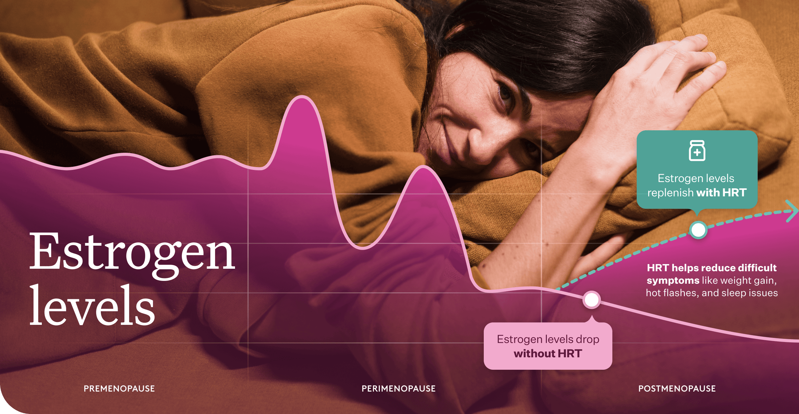 Estrogen Levels. Estrogen levels drop without HRT.Estrogen levels repenish with HRT. HRT helps reduce difficult symptoms, like weight gain, hot flashes, and sleep issues.